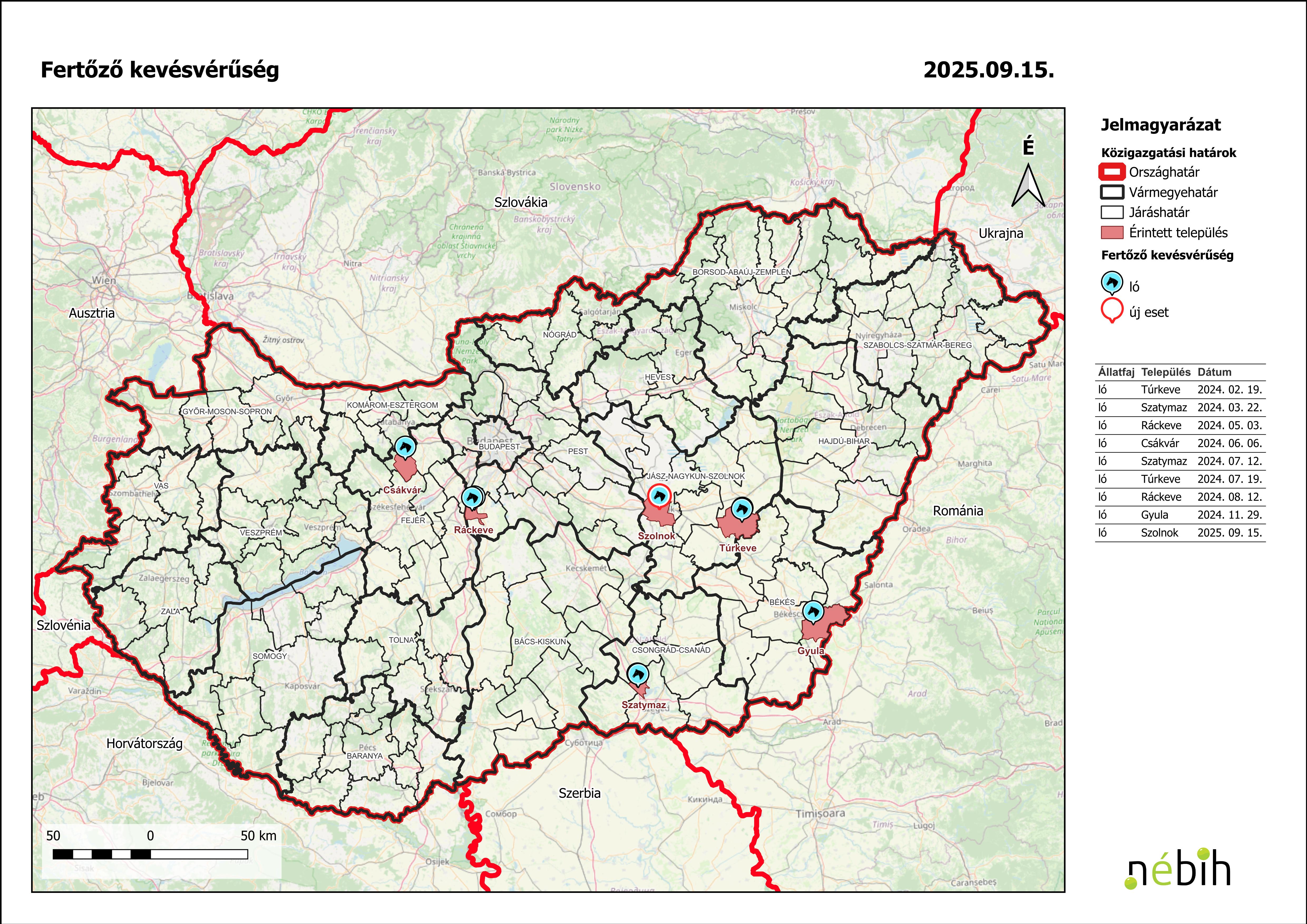 Kéknyelv-betegség megerősített esetek Magyarországon - 2025