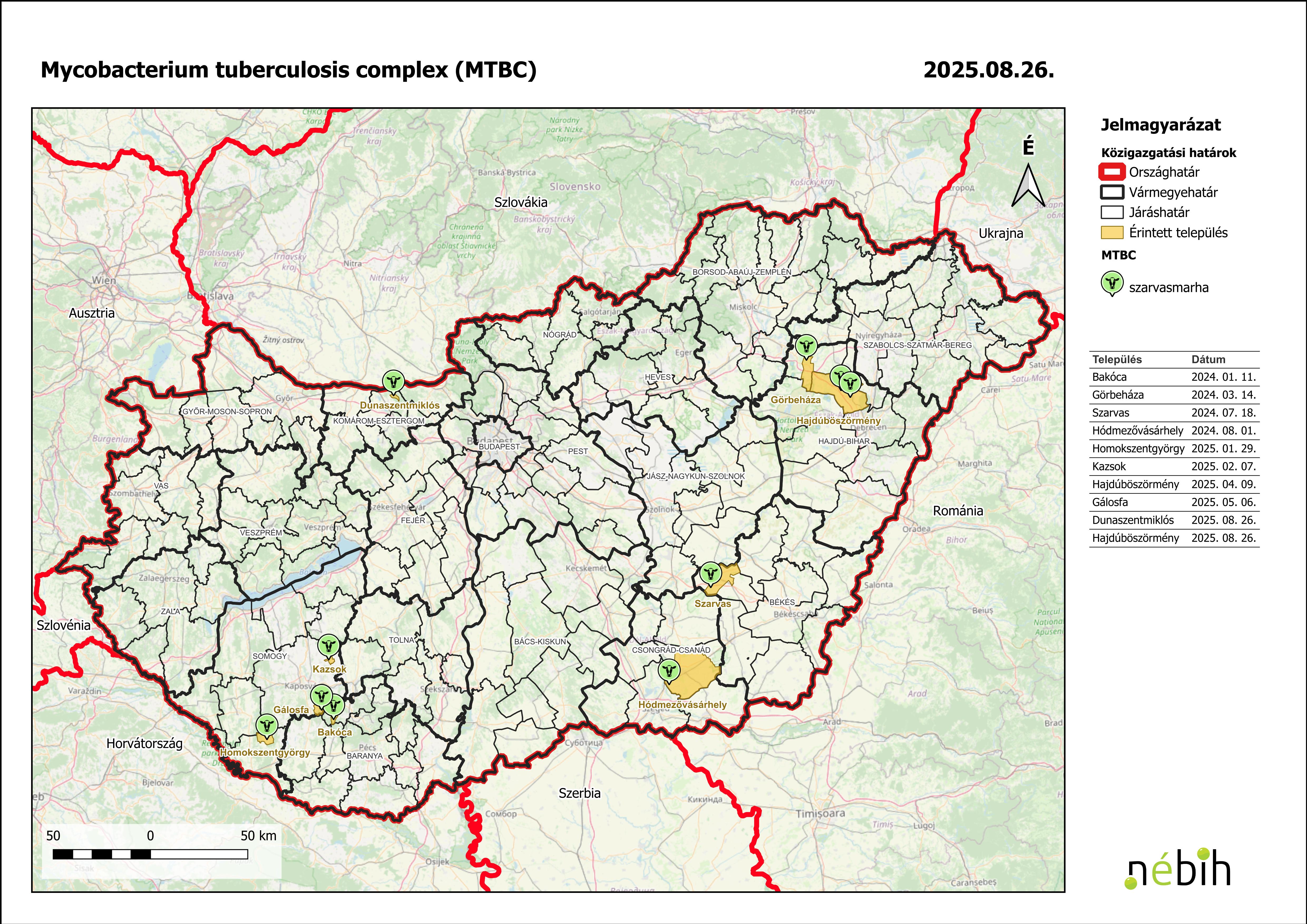 Mycobacterium tuberculosis komplex (MTBC) esetek szarvasmarha állományban - 2024-2025
