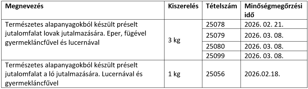 A Nébih kéri a vásárlókat, hogy az alábbi azonosító adatokkal megegyező termékeket ne adjanak lovaknak!