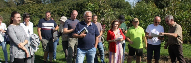 A rendezvényt a fajtakísérleti parcellák megtekintése zárta, drón bemutatóval. A kísérleti dió parcellák metszését és gyakorlati fogásait Szili Ferenc állomásvezető ismertette.