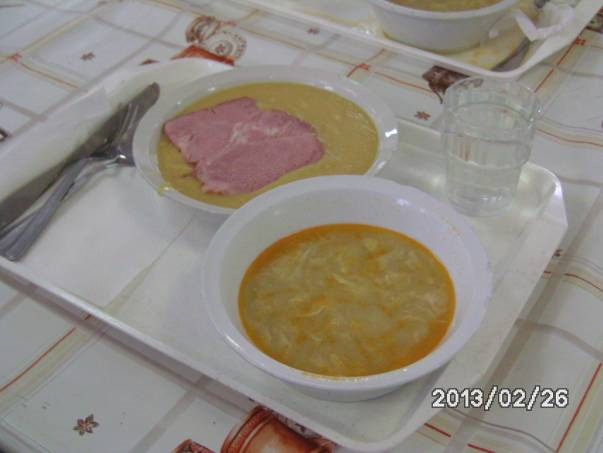 Menü: Tojásleves, sárgaborsó főzelék, füstölt főtt tarja