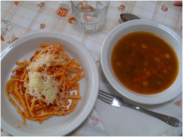 A tészta kellően átfőtt, nem ragad, a hús megfelelően puha, a szósz jellegzetes sűrűségű. |