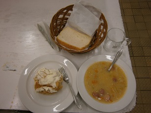 Menü: Frankfurti leves, Túróval töltött zsemle, Kukoricás kenyér
