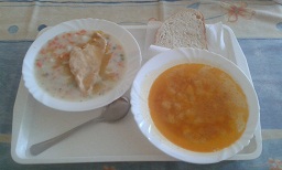 A főzelék megfelelően besűrített, csomómentes, a zöldségek kellően puhák. A borsó héja kissé kemény. A karfiol friss, a többi zöldségféle mirelit. A hús rugalmasan puha, omlós, szaftos. |
