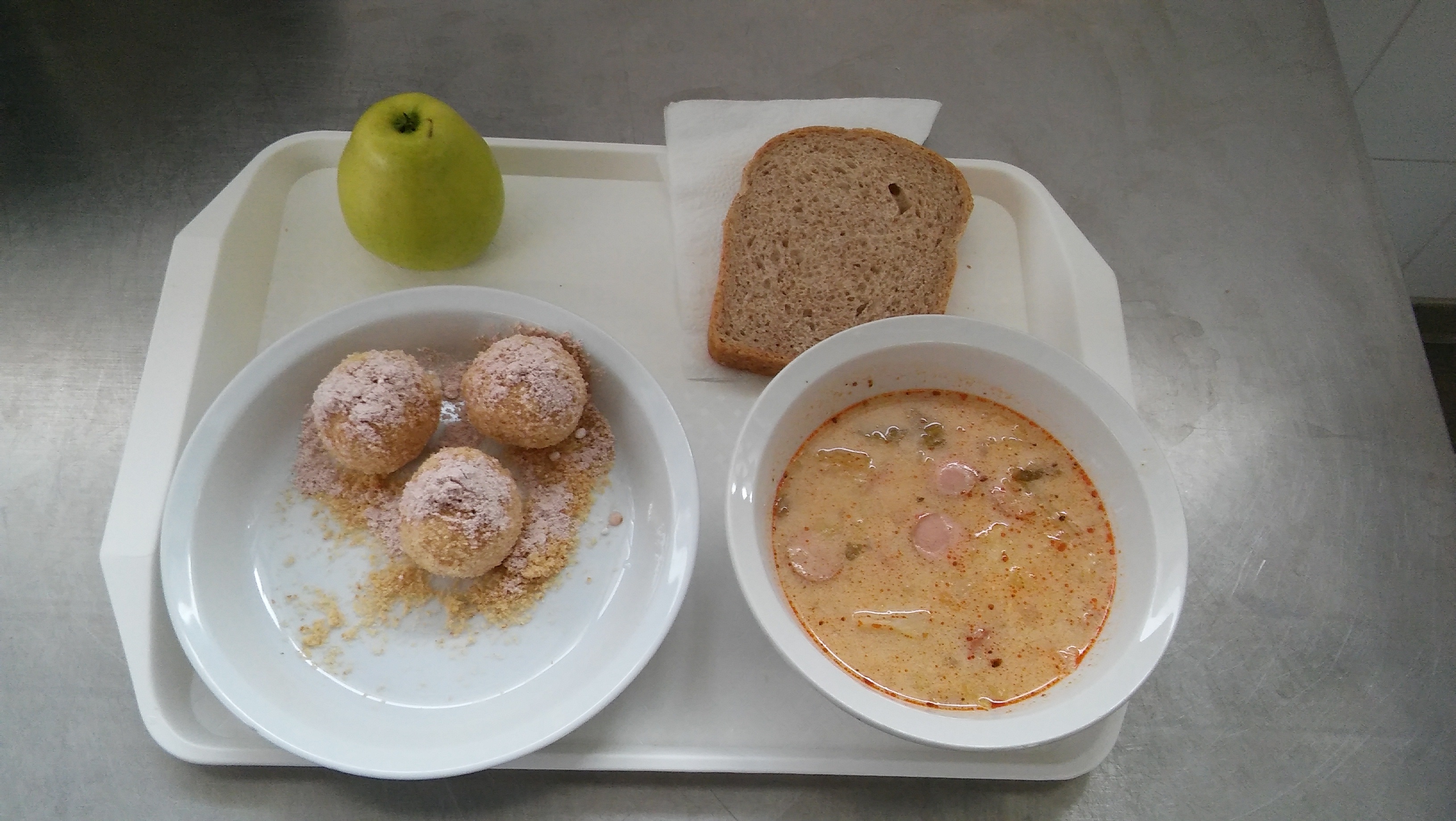 Menü: Frankfurti leves, Szilvatöltelékes gombóc, Alma,